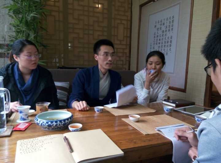 环境自是古雅,古乐绕梁袅袅,帘外雨声潺潺,实木茶几青花瓷盏。沏好一壶滇红,李政学长开始向我们讲授他所理解的中国诗学。